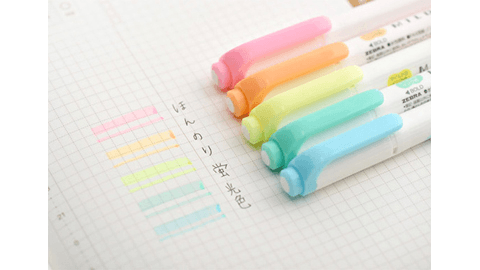 ほんのり蛍光色5本セット(マイルドブルーグリーン・マイルドピンク・マイルドブルー・マイルドオレンジ・マイルドイエロー)