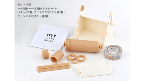 また「mt makimaki」本体には、おまけのマスキングテープが1本ついてきます。3ミリと6ミリの「mt slim」やミナ ペルホネンのマスキングテープや松本大洋さんの絵のマスキングテープ、ハローキティ柄のマスキングテープなどと合わせて使うのもおすすめです。