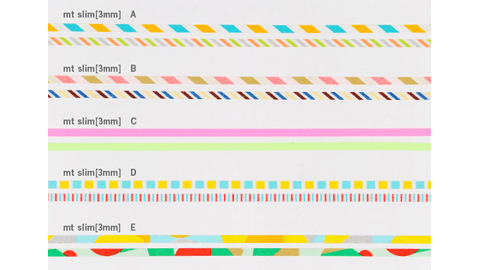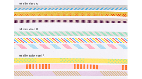なにかと使い勝手のよいマスキングテープ「mtテープ」の携帯に便利なスリムタイプです。ことしは、水玉模様やストライプなど手帳を華やかにしてくれるかわいいものを数多く取り揃えました。