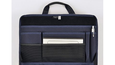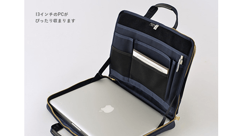 WEEKSといっしょに持てるPCケースとして、「WEEKS サンドウィッチ」とおそろいの3色が登場。カフェなどの外出先でも、ケースを開くだけで作業スペースを作り出せる自由さをイメージしました。11インチのノートPCはやや余裕を持ってしまえて、13インチなら、ぴったり収まる大きさです。内側の左右にはバンドがついているので、画面を開いてもケースは倒れません。クッション素材が、外部からのショックをやわらげます。A4サイズの書類も折らずに入るドキュメントポケットや、ペンやコード類など細かいものを収納するポケットが充実。資料だけでなく、作業に必要なツールも持ち歩けます。持ち手が短めでかさばらないので、バッグインバッグとしてもぜひお使いください。