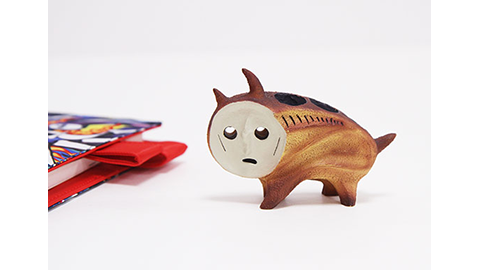 <犬の植木鉢>岡本太郎記念館の庭に展示されている「犬の植木鉢」(1963年)の手のひらサイズのミニチュアです。背中に3つのくぼみがあり、クリップなど小さなものを入れることができます。