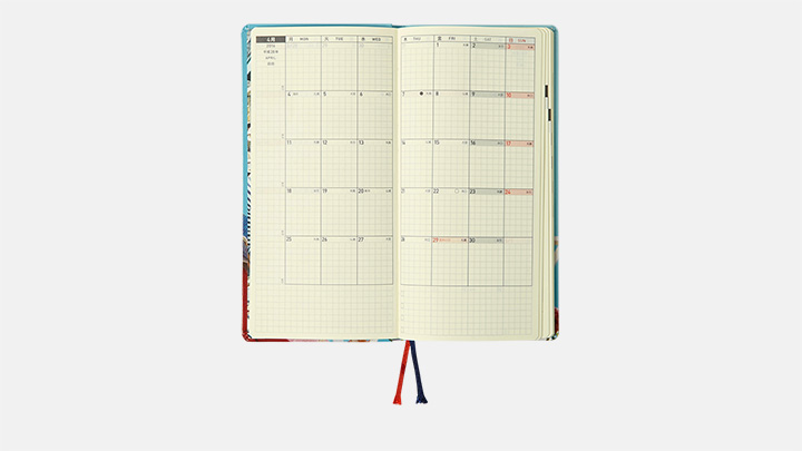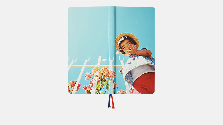 写真家の川島小鳥さんが、佐渡島で出会った女の子を撮影した写真集『未来ちゃん』。「ほぼ日手帳 WEEKS」の表紙として、写真集には収録されていない、はじめての海外旅行に出かけた「未来ちゃん」の写真を使用しています。写真集のような装丁にするために、表紙には光沢のある表面加工をして、「2016」の年号も空押しにしました。「バラと空」の表紙で使用している写真は、気持ちよく晴れたパリの空の下、上品に咲くバラの花に息を吹きかけて飛ばす「未来ちゃん」が遊んでいるようすで、表紙から裏表紙にかけて、一枚の写真になっています。表紙と裏表紙の見返しにも海外のカフェとレストランにたたずむ写真をプリントし、写真集を持ち歩けるような手帳です。そして、特典の下敷きには佐渡島で撮影した、夏と冬の写真を収録しています。しおりは、赤と青の2色です。おかっぱ頭に、真っ赤なほっぺ、天真爛漫な表情を浮かべる「未来ちゃん」がいつでもそばにいてくれるような手帳です。