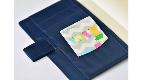 ほぼ日手帳にぴったり合うサイズのふせんです。「月間スケジュール」や「1日ページ」のマス目にちょうどいい大きさのふせんが揃っているため、貼ったときの見た目もきれいで、予定の管理にも便利です。おすすめは、はっきりと決まっていない予定をふせんに書いて貼っておくこと。予定変更があっても、ふせんを貼り直すだけなので、書き直すのに使っていた時間を節約できます。カード型のケースに入っているため、手帳のポケットに入れて持ち運べるのもポイント。予備のリフィルも販売していますので、なくなったら補充してお使いいただけます。また、ことしはケースのデザインを一新。グレーが基調の落ち着いた色味ながら、どこかたのしい雰囲気のあるケースになりました。