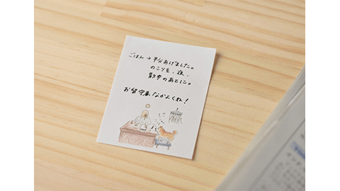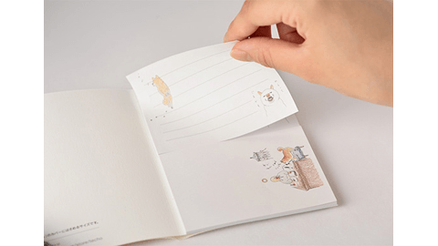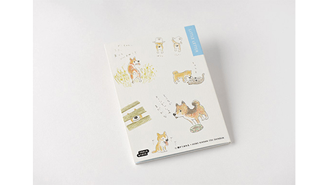 「雲がうまれる」さんの描いたかわいい柴犬のイラストが入ったミニ便せんです。手帳にはさむのにちょうどいい薄手のケースのなかに、「無地」と「罫線」の2種類が縦に並んで入っています。持っておくと、ちょっとメモを渡したいときや、手帳に何か書いてはさんでおきたいときなどなにかと便利にお使いいただけます。