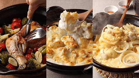 伊賀・土楽の福森道歩さんの第二作となる土鍋料理の本ができました。第一作の『スゴイぞ!土鍋』が、ベア1号&2号を初めて使う方向けのベーシックな教科書だとすると、この『土鍋だから、おいしい料理』は、さらにレパートリーが広がるレシピと土鍋使いのコツがたくさん紹介された、「土楽の土鍋を使う人、必携の副読本」です。本書には、ひとりでもたのしめる「おつまみと軽いおかず」から、大人数でわいわいいただく四季折々の食材を使った鍋やスープ、炊き込みご飯やピラフなどのごはん炊きなど主要42品に、手づくりのお揚げ料理、伊賀の里山の食材を使った料理など、約50レシピを掲載しています。和食はもちろん、イタリア、フランス、中国、韓国、インド‥‥と、世界を旅する土鍋料理の本でもあります。