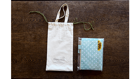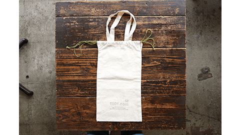 グッズや本をいれて、ひもをきゅっとむすぶだけでできあがり。 贈り物を手渡しするときに かんたんにラッピングができるふくろです。スタンプの下に書いてある英語の文章は、"Don't seek for things that would eventually disappear. They are here not to seek for,but to play with." 日本語に訳すと‥‥、 「いつか無くなるものを求めちゃいかんのだよ。 無くなるものは、求めるためではなく、 そいつで遊ぶために、この世にあるんだからな」 これは、「ほぼ日」の とびらのページにも書かれている、 セフティ・マッチさんの格言なんです。