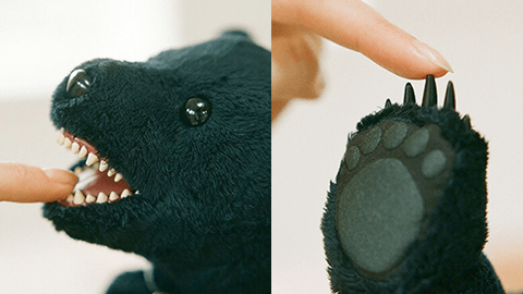 リアルなするどい歯と、とがった爪、肉球。自在に動かすことができる、首や手足。「誤解されやすいくま」は、特別に熟練した人の手で、一つ一つ手づくりされる、スペシャルなぬいぐるみです。通常にくらべ、ありえないほど手が込んでいるため、1日につくられる数は、わずか3〜5頭。シリアルナンバーが刻印されたペンダントつきで、愛蔵品としてそばに置くのにも、大切な人にプレゼントするのにもふさわしい、高い品質感を備えています。