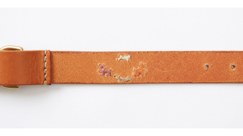 - 染色・着色された革は、他のものとの摩擦や密着により色移りすることがあります。特に水や汗などで濡れた場合は衣服や持ち物に色移りしやすくなるためご注意ください。