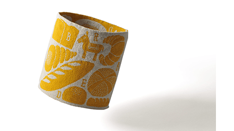 できたての暖かいパンが冷めないように服の中に入れて持ち運んだとき、服の中から漂う幸せなパンの香りをイメージしました。