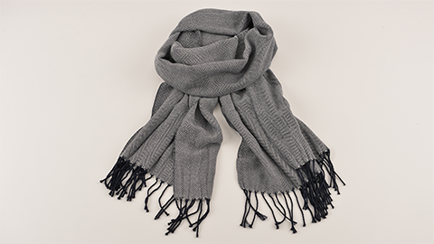品格のあるスーツの、厚みのあるツイード生地のような印象のくびまきです。