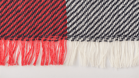 3色ですが、色の合わせ方と織りをくふうすることで、6つのパターンを表現しています。