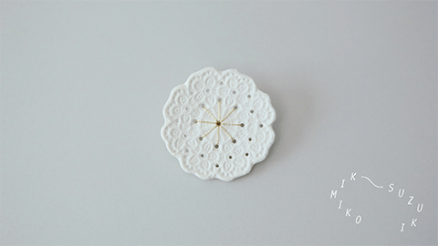 素材/白磁(裏面に金彩)、真鍮、金糸