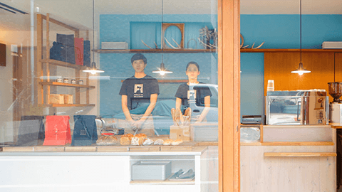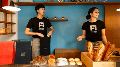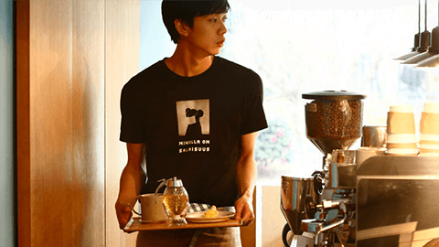 男性:ギャルソンエプロン¥3,990/fog linen work、パンツ¥19,950/ヤエカ(ヤエカ アパートメント ストア)