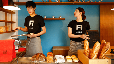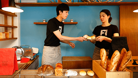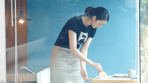 女性:ギャルソンエプロン¥3,990/fog linen work、シューズ¥21,000/dansko(シースター)、パンツ/スタイリスト私物