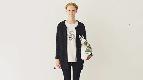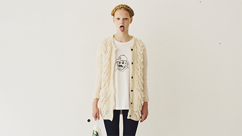 ウェアの編みものキット。すっきりしたシルエットの、こんなにかわいいカーディガンが自分で編めます。詳しい説明はこちら。