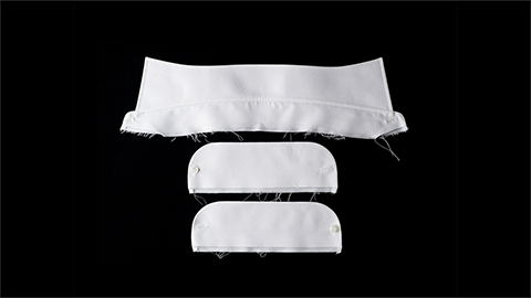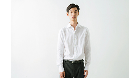 “ワイドカラー”は、ボレッリ社では“ルチアーノ(Luciano)”という名前で知られている、定番のひとつ。ネクタイを締めたときに、とてもきれいに決まり、日本市場でもたいへん人気が高いかたちの襟なんです。このワイドカラーシャツの素材には、「ヘリンボーン」(杉綾)をえらびました。それも、目を凝らさないとわからないほどのこまかな織り。海島綿とスーピマ綿の交配種であるマスターシードコットンの糸を細くつむぎ、やわらかく織っていますから、とてもソフトな感触。ヘリンボーンならではの光沢も出ています。ちなみに生地をつくる工程は、日本国内でおこなっています。それをイタリアに送り、ボレッリ社が縫製。かたちは、まったくのイタリア仕様ではなく、メンズのシャツはフィット感が大切であると、日本人の体型に合うスタイルを採用しています。