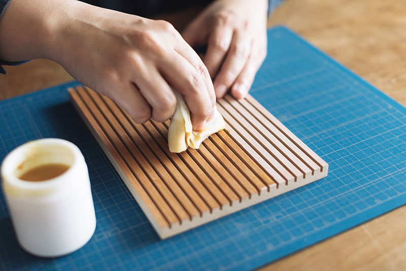 キットを組み立てたあとで付属のオイルを仕上げに塗ると、