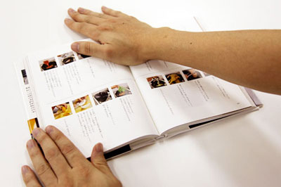 「ぎゅっとおさえると、開いたままになるような製本」