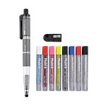 | 内蔵芯 | 赤・青・緑・茶・橙・黄・ジアゾノンコピー芯・PPCノンコピー芯・専用替芯8種(各2本入、芯径2ミリ)・芯削り器 ※ジアゾノンコピー芯:青焼きコピーに写らないピンク芯 ※PPCノンコピー芯:普通紙コピーに写らないブルー芯 |