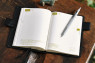 黒色にドットモチーフの手帳カバー。