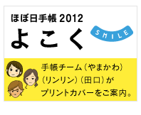 | その他 | HOBOタグ(1つ)/2012タグ(1つ)/しおり(2本)/バタフライストッパー/カード用ポケット(4つ)/浅いポケット(1つ)/チケットポケット(1つ)/はがきも入る大きなポケット(2つ)/外側ポケット(1つ) |