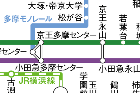 ▲乗り換え駅は「ダンベル」表示でわかりやすく