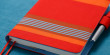 真っ赤な生地にのびのびと縞模様をのせた、