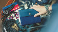 「BLUE BLUE」の刻印入りのボタンには