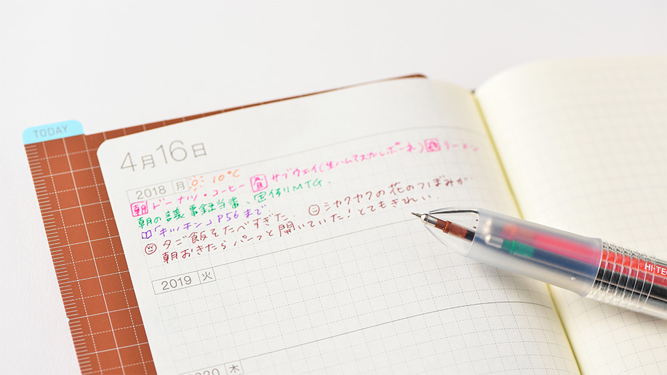 This ultra-fine gel pen has a body that holds up to 5 refills to allow acess to a variety of colors at once. This pen tip is 0.3 mm to fit more writing into the smaller graph paper lines in the Hobonichi Techo and Hobonichi 5-Year Techo.