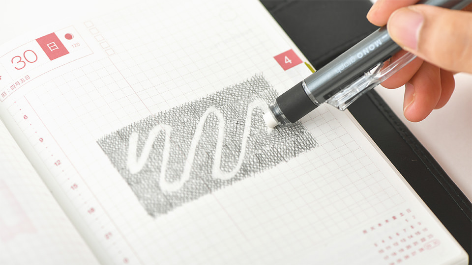 Twisting the top reels out the eraser, allowing you to adjust the eraser length to your liking. You can refill the eraser with Tombow Mono Graph Eraser Refill (not available in Hobonichi Store).