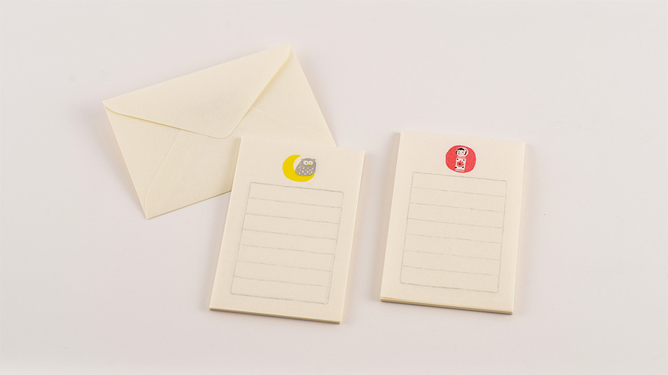 These small letters are perfect for writing a quick thank-you or leaving a note for someone. The set includes 30 pieces of paper and 5 envelopes, all in a compact size that fits in the palm of your hand or neatly into a Hobonichi Techo cover pocket.