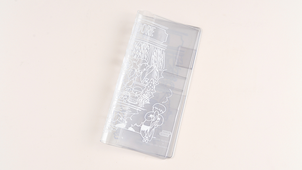 This is the decorated version of the Weeks Clear Cover, a protective, clear plastic covering that goes over your Hobonichi Techo Weeks. It protects your planner from wear and tear over the course of the year, and provides a sideways bookmark, a place to store your pen, and two card-size pockets.