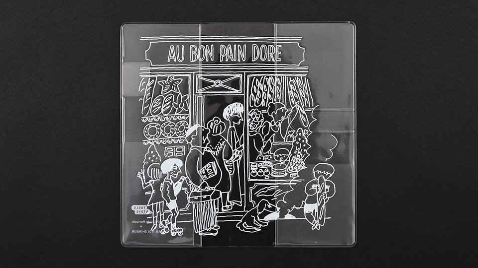 This illustration by graphic designer and book illustrator Seiichi Horiuchi (1932-1987) features locals lining up outside a popular bakery on a Paris street corner. Members of the crowd include a boy chewing on a freshly-bought baguette, a worker with a newspaper under his arm, and a girl peering into the shop window. The lively scene is almost enough to make you hear the sounds of the hustle and bustle.