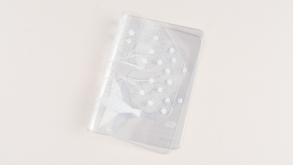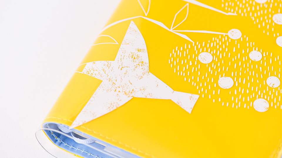 This is the decorated version of the Cover on Cover, an optional, extra covering that fits select Hobonichi Techo covers to protect them from wear and tear while instantly giving the cover a fresh new look. (Not for use directly on book.) It also provides a place to store postcards, pictures, and other decorations to spruce up the look of your cover. Feel free to store family pictures, travel postcards, and other decorations inside the Cover on Cover for additional customization.