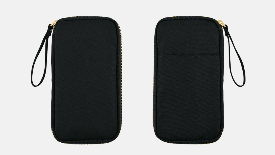 The Small Drawer Pouch is the size of a long wallet and fits writing utensils, cards, charging cables, and other slim items. The pouch can lay open completely flat when it’s unzipped, making it easy to glance inside and grab what you need.