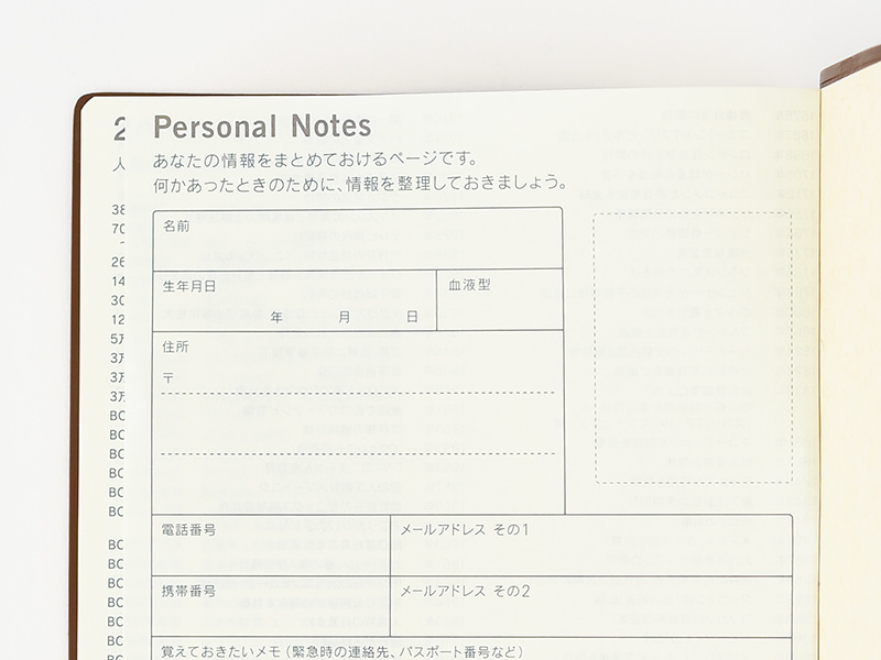 This page provides space to write down plans for the year or write down a review of what happened. The Bookmark section is useful for writing down dates of interest.