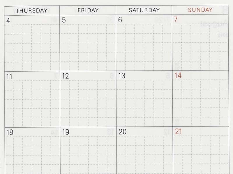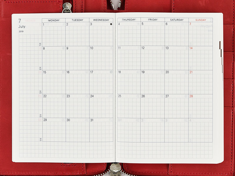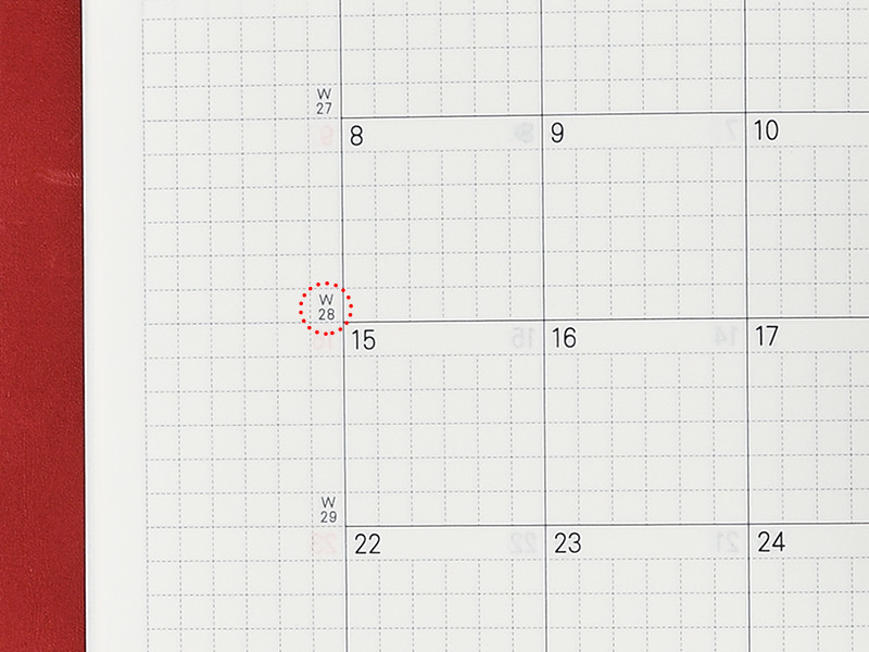 The graph paper design is lightly printed to make it easier to write in your plans and take notes in an even line. The calendar is printed in charcoal gray and a striking red for a refreshing design.