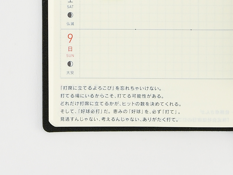 From the heartfelt to the humorous to the whimsical, each weekly spread of the planner features a quote specially selected from the planner’s parent site, Hobo Nikkan Itoi Shinbun. The quotes for the Weeks version are only in Japanese. If you would like the quotes in English, please buy the Hobonichi Techo Planner.