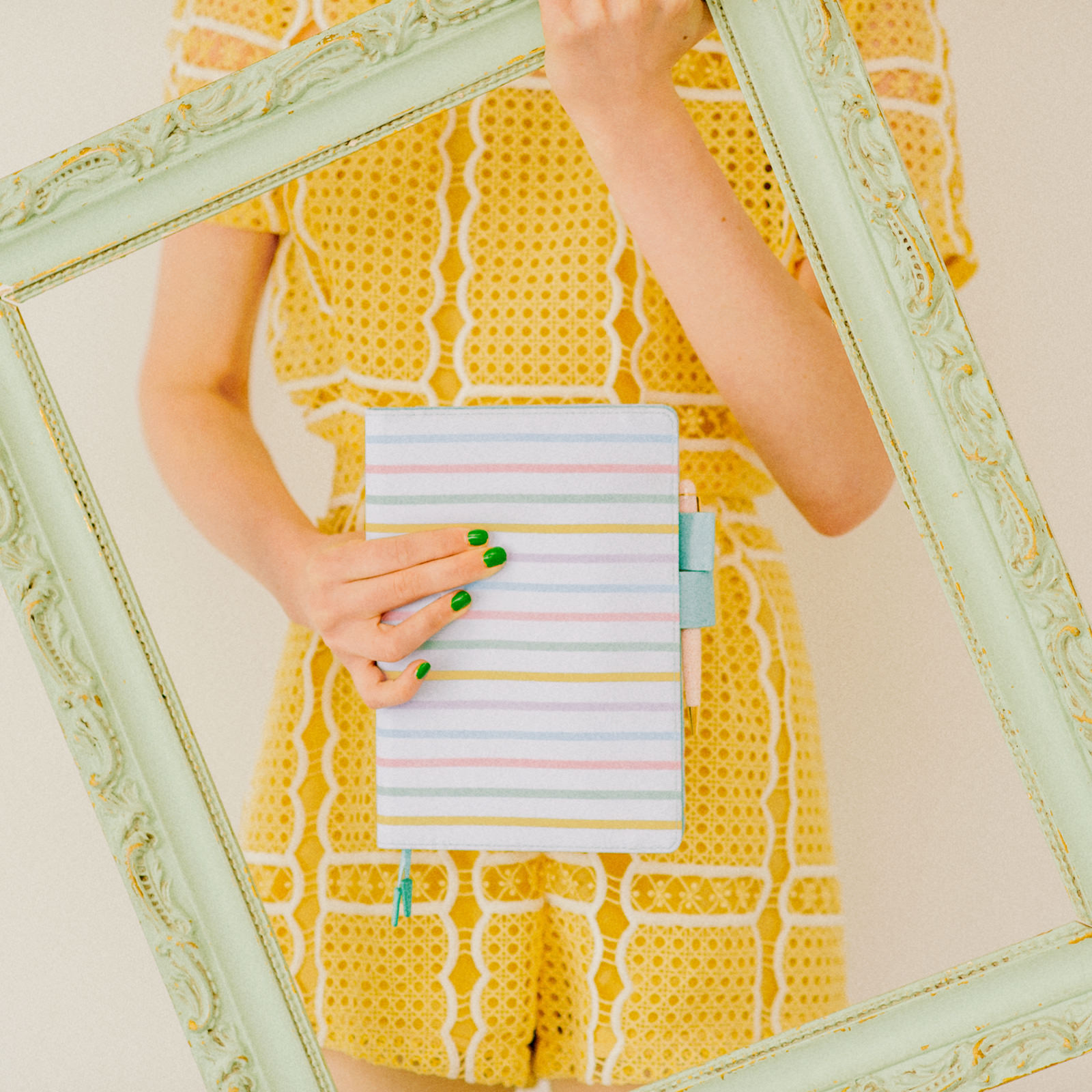 The pen holders and cover interior are a lovely blue-green.