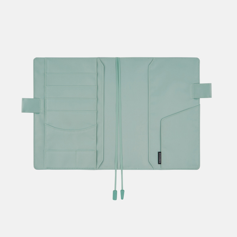 The pen holder is designed to perfectly fit the 12.2 mm (0.48”) diameter Jetstream pen offered as a free bonus gift with select Japanese-version Hobonichi Web Shop products. Pens with certain shapes and materials may be difficult to pull through the holder. The holder can fit pens up to 13.5 mm (0.53”) in diameter.