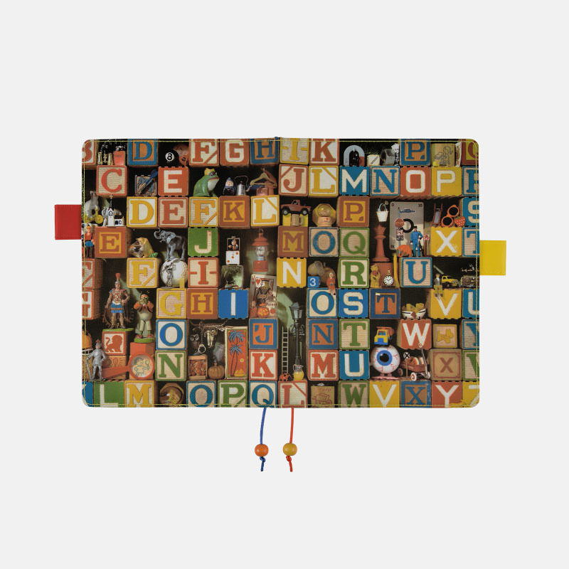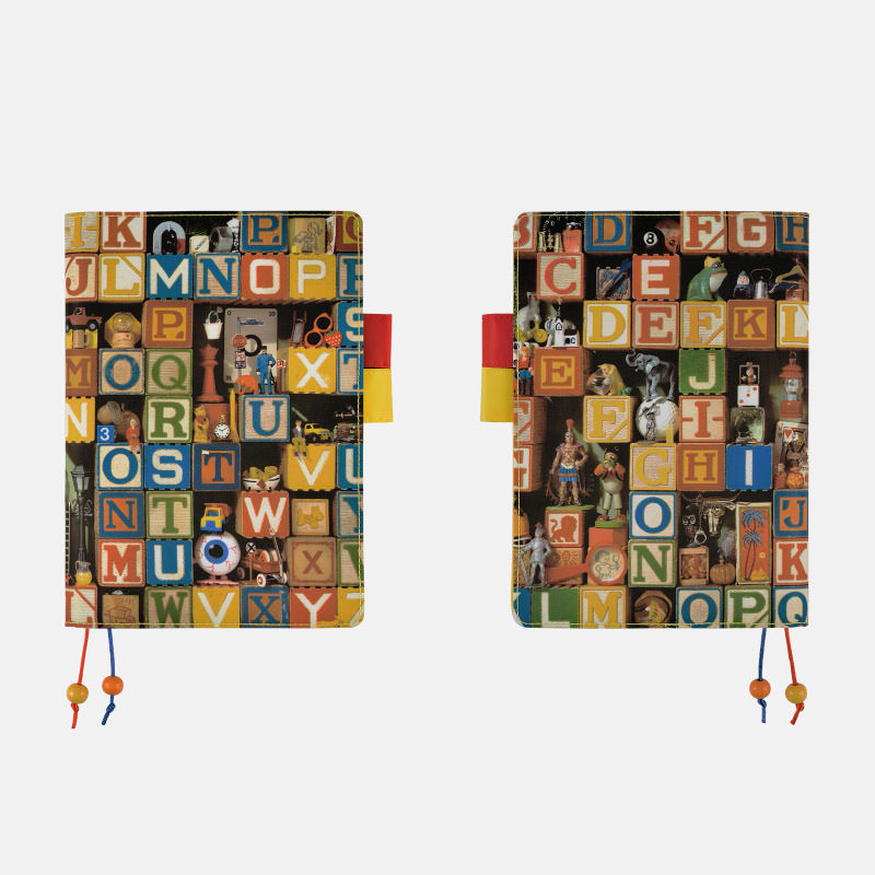 The A5 size Hobonichi Techo cover contains an all-over print of a maze of alphabet blocks from the book Can You See What I See?: Picture Puzzles to Search and Solve. The blocks in the picture are surrounded by unique and charming little objects spaced between them.