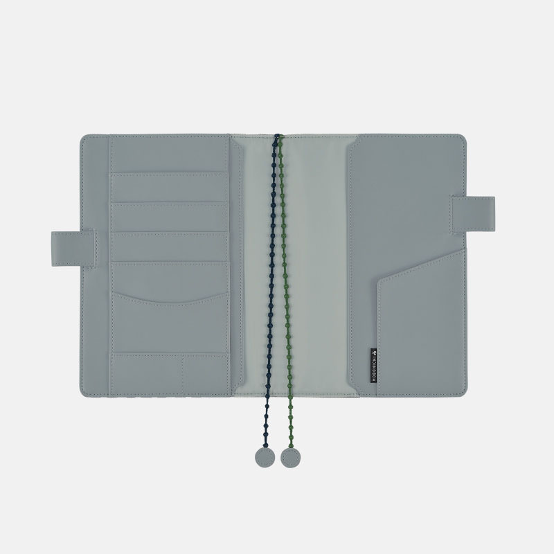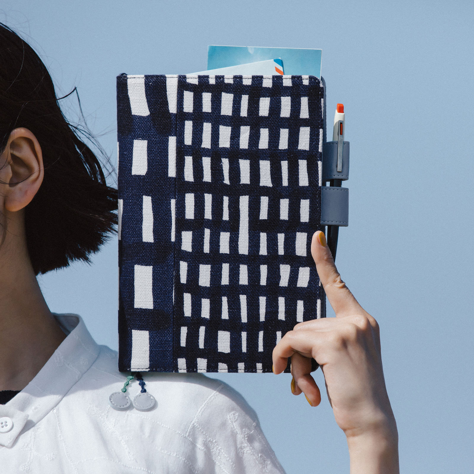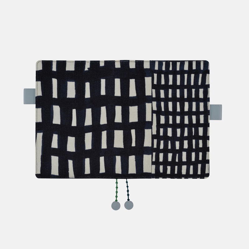 The bookmarks of this cover use original mina perhonen lace straps. If you see any loose threads, we recommend refraining from pulling on it and instead tucking it between other woven threads.