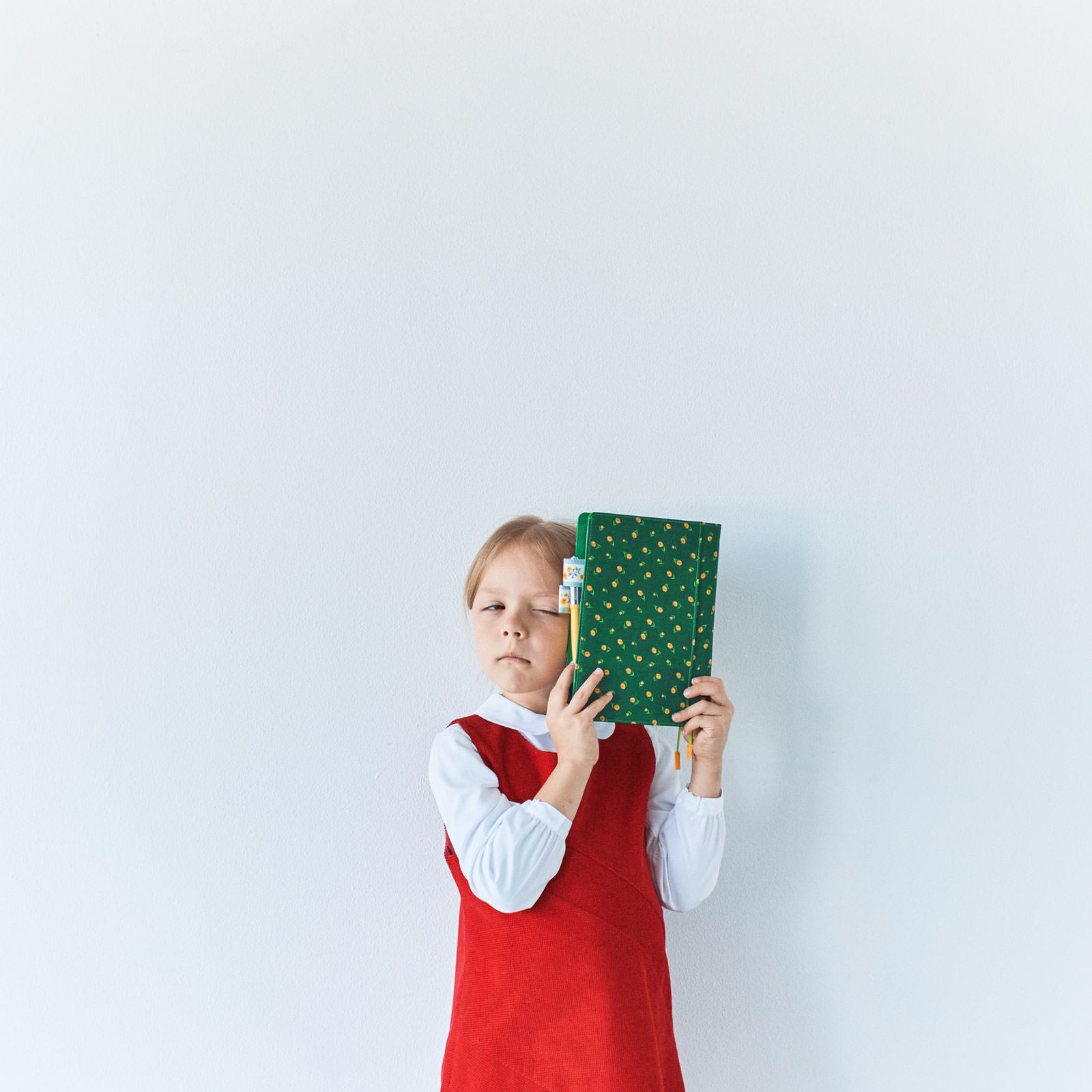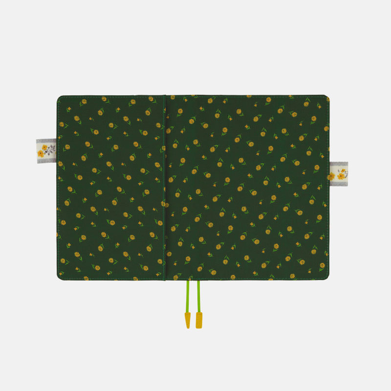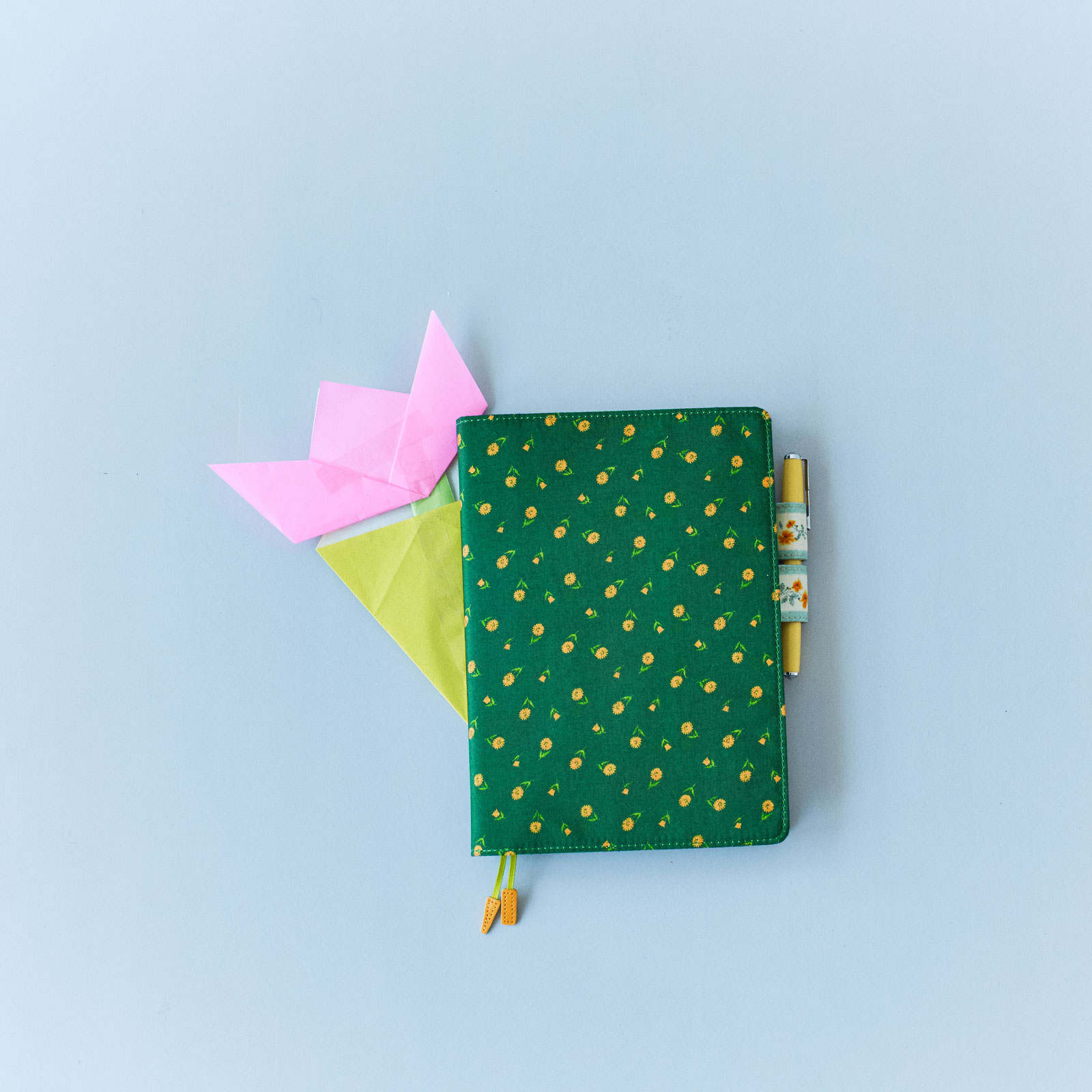The cover design is accented on the pen-holders by another vintage handkerchief design, featuring gently blooming yellow flowers slightly different from those on the main cover.