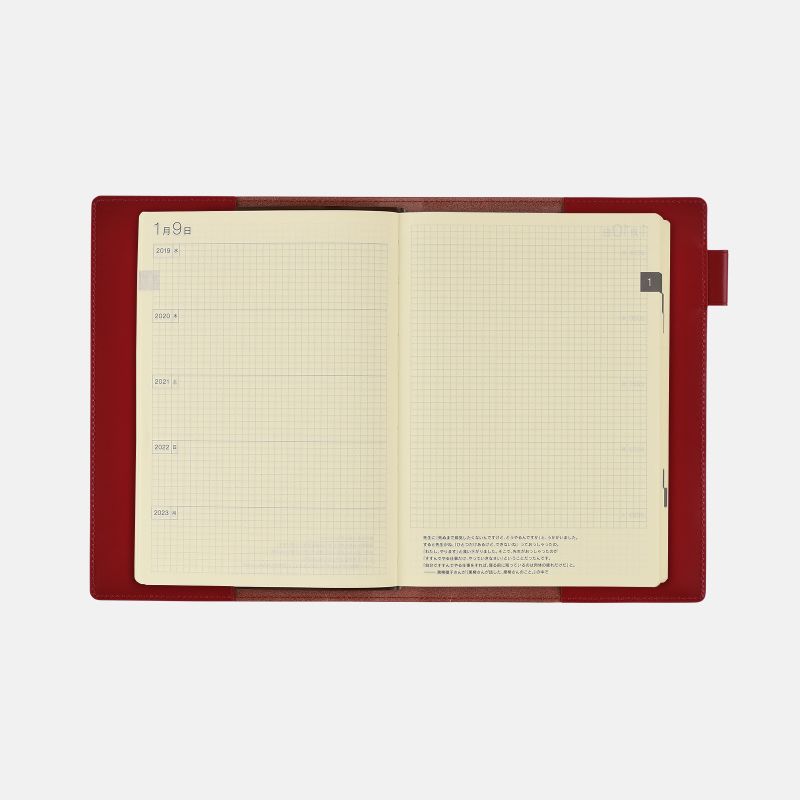 The gorgeous and timeless Red cover is specially designed to comfortably fit the Hobonichi 5-Year Techo.