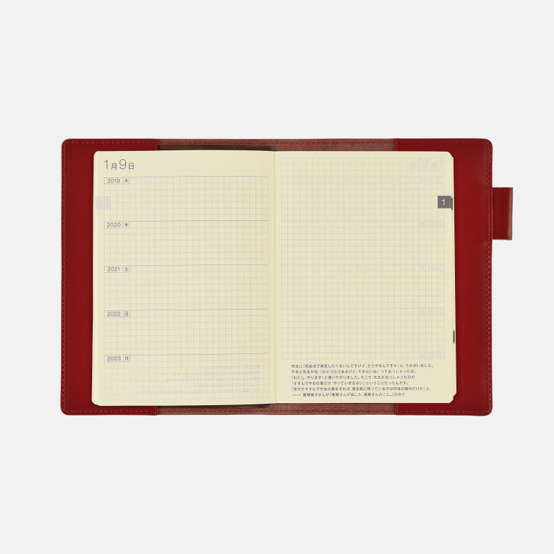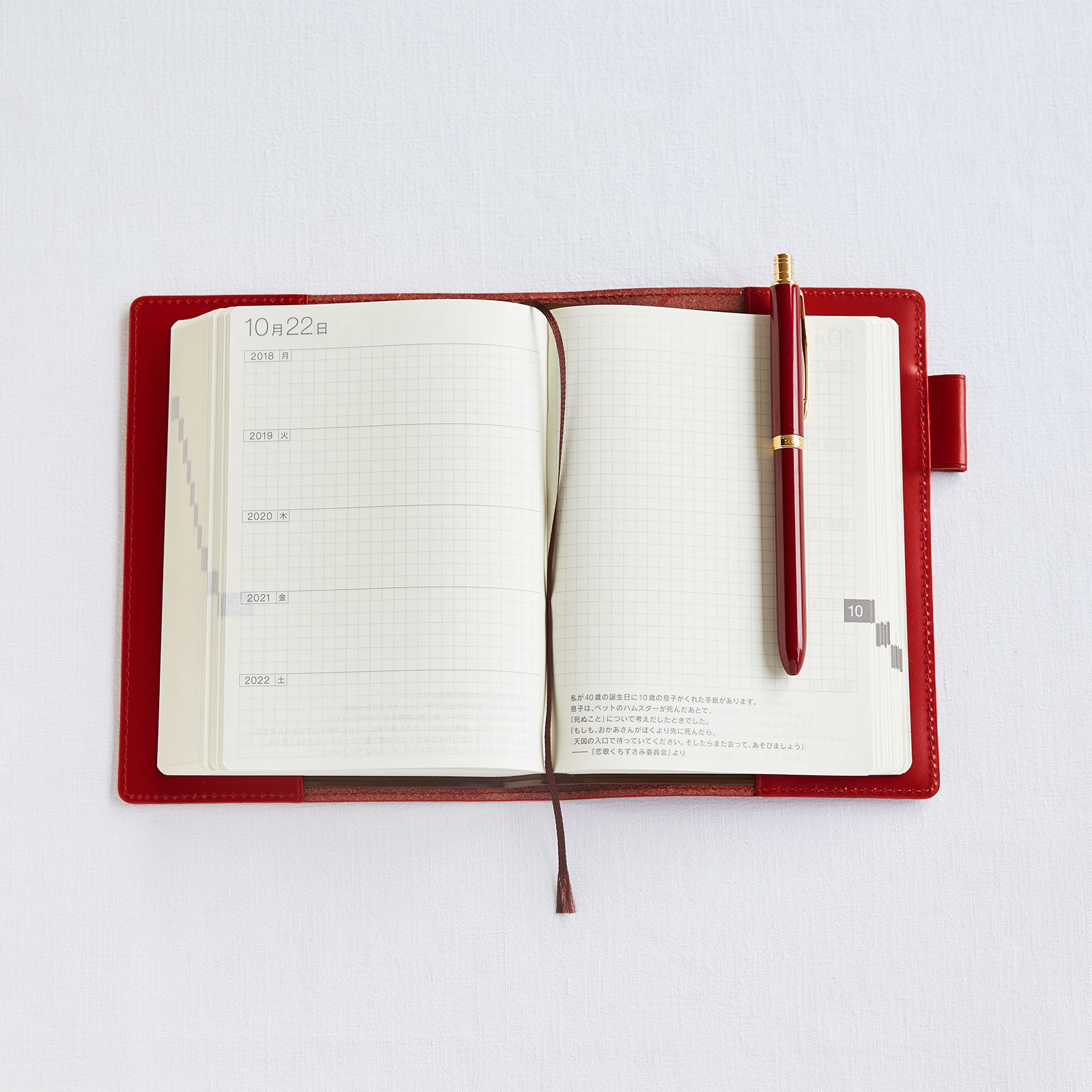 The gorgeous and timeless Red cover is specially designed to comfortably fit the Hobonichi 5-Year Techo.