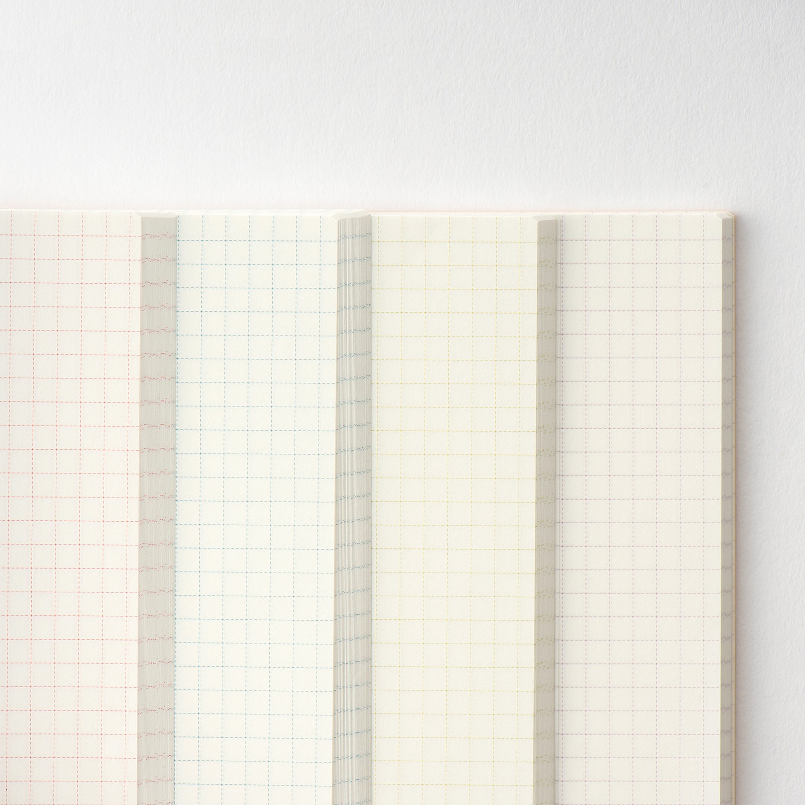 The 3.7 millimeter graph paper is also the same as that of the Japanese-edition Hobonichi Techo Original. The color of the ink on the page changes every 60 pages (red / blue / green / purple), making it easy to split the book into several themes or use the colors as a way to more easily find old entries.