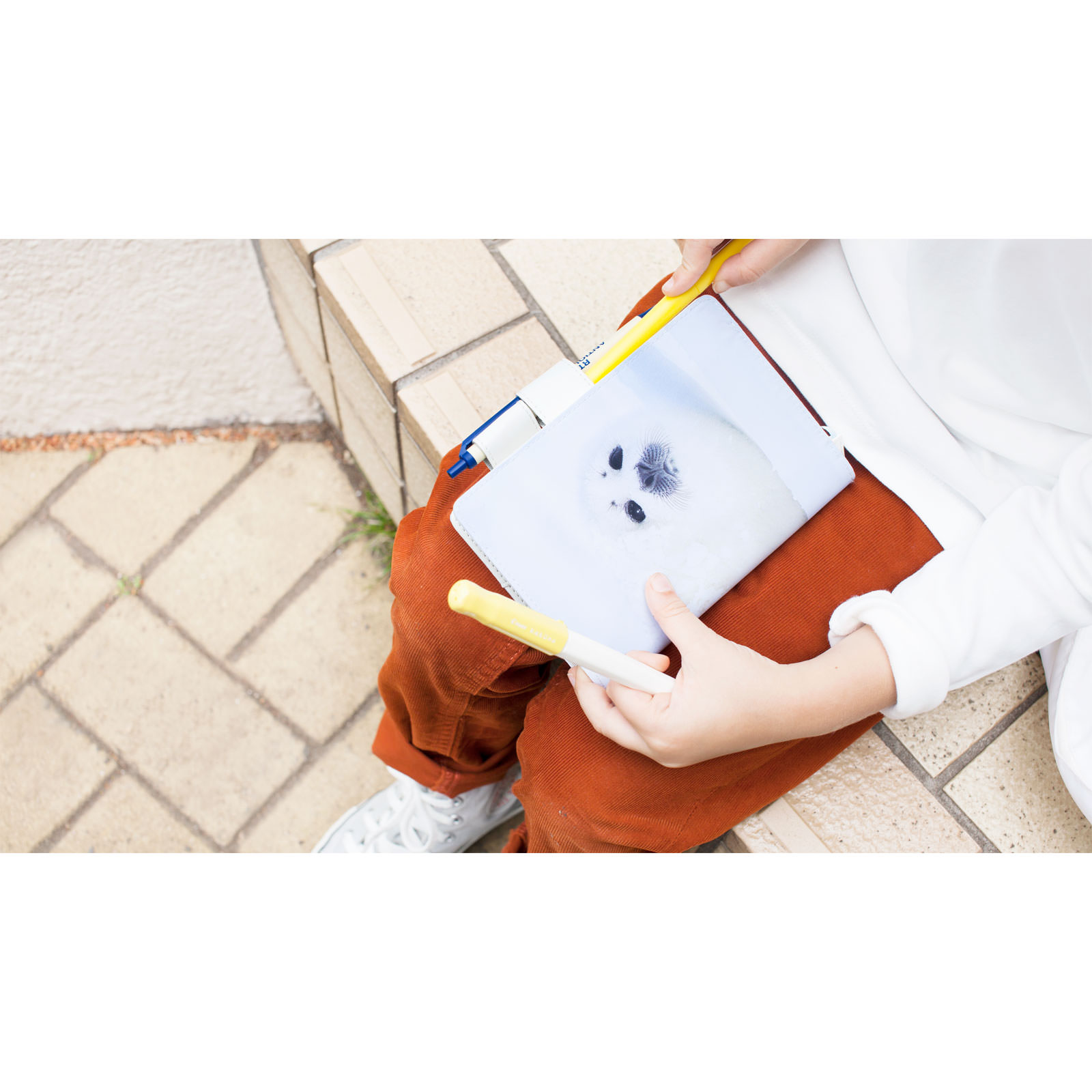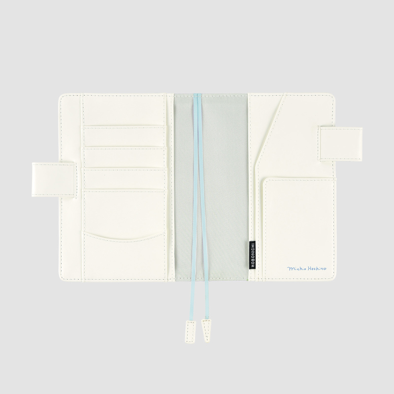 The interior and pen holders are made of white synthetic leather to evoke the image of a vast, snowy tundra. Michio Hoshino’s signature is also printed on the interior pocket.