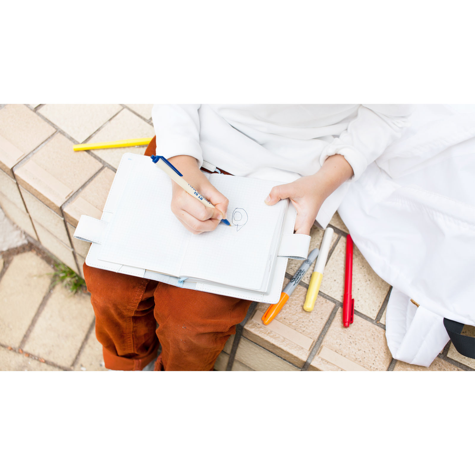 The pen holder is designed to perfectly fit the 12.2 mm (0.48”) diameter Jetstream pen offered as a free bonus gift with select Japanese-version Hobonichi Web Shop products. Pens with certain shapes and materials may be difficult to pull through the holder. The holder can fit pens up to 13.5 mm (0.53”) in diameter.
