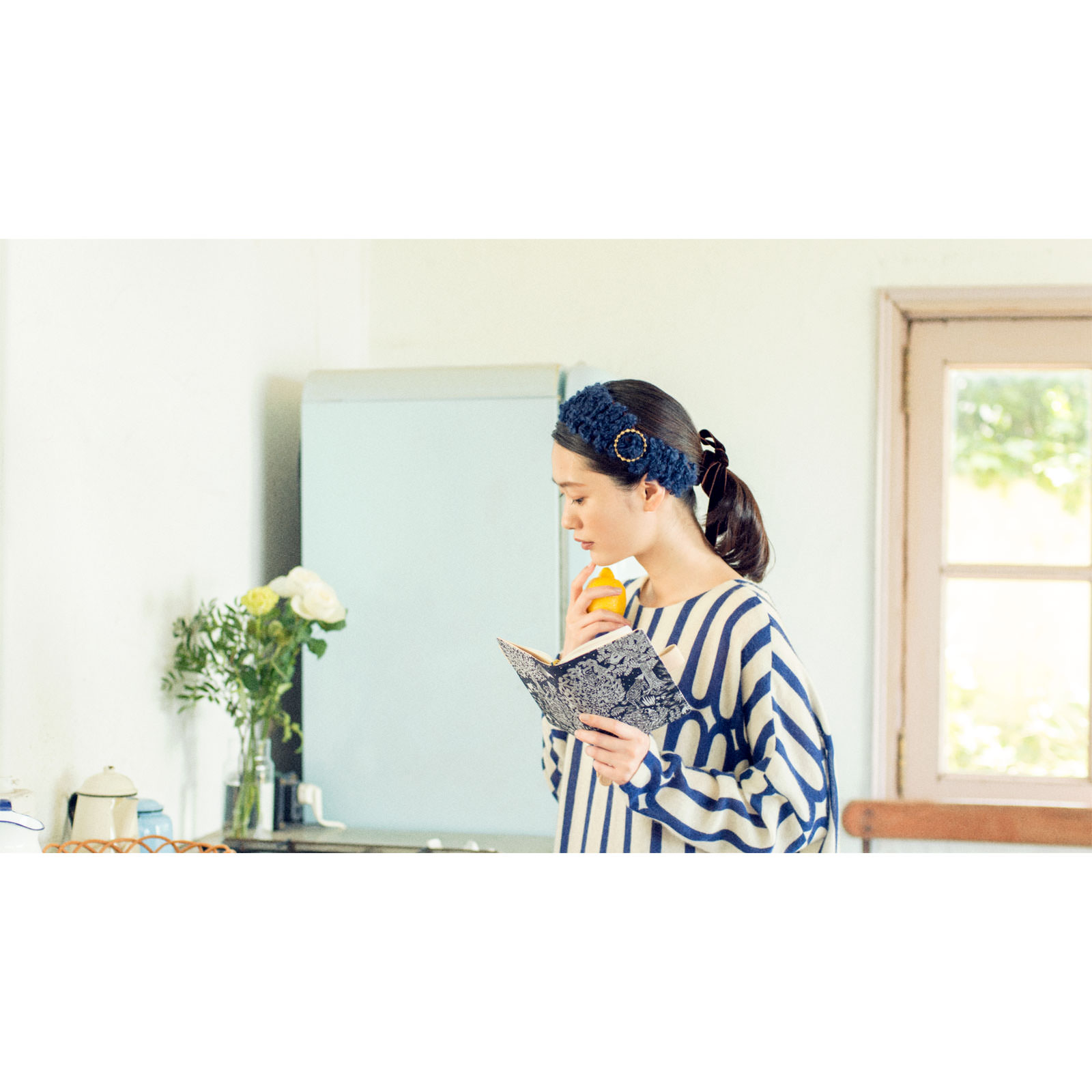 The bookmarks of this cover use original mina perhonen lace straps. If you see any loose threads, we recommend refraining from pulling on it and instead tucking it between other woven threads.