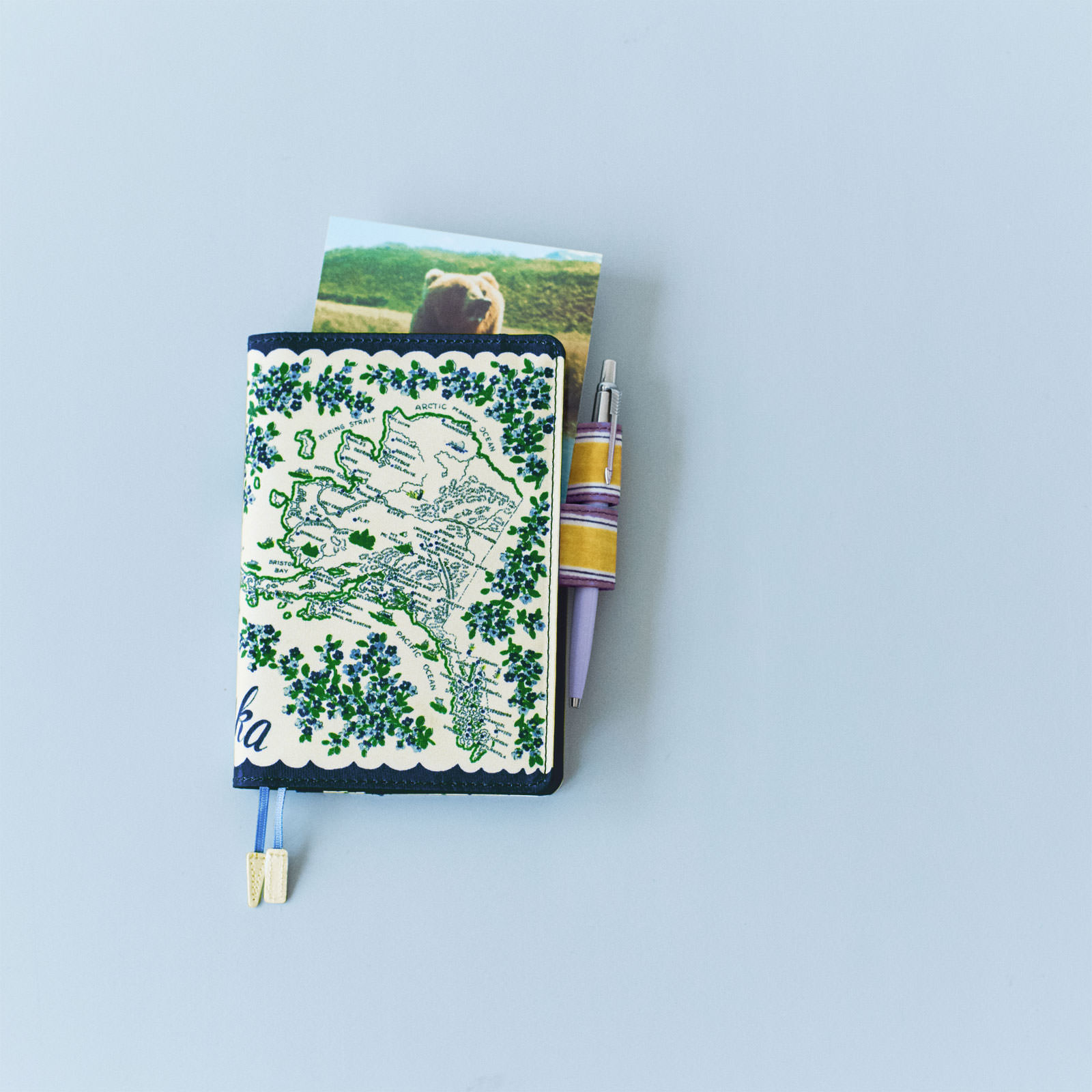 The handkerchief importer and manufacturer Blooming Nakanishi has been around for 140 years. For this techo cover we chose a charming image from their World Nations collection, which contains over 3,000 designs. Its abundant detail means you’ll be able to gaze at it every day as you reach for your techo without getting tired of it.